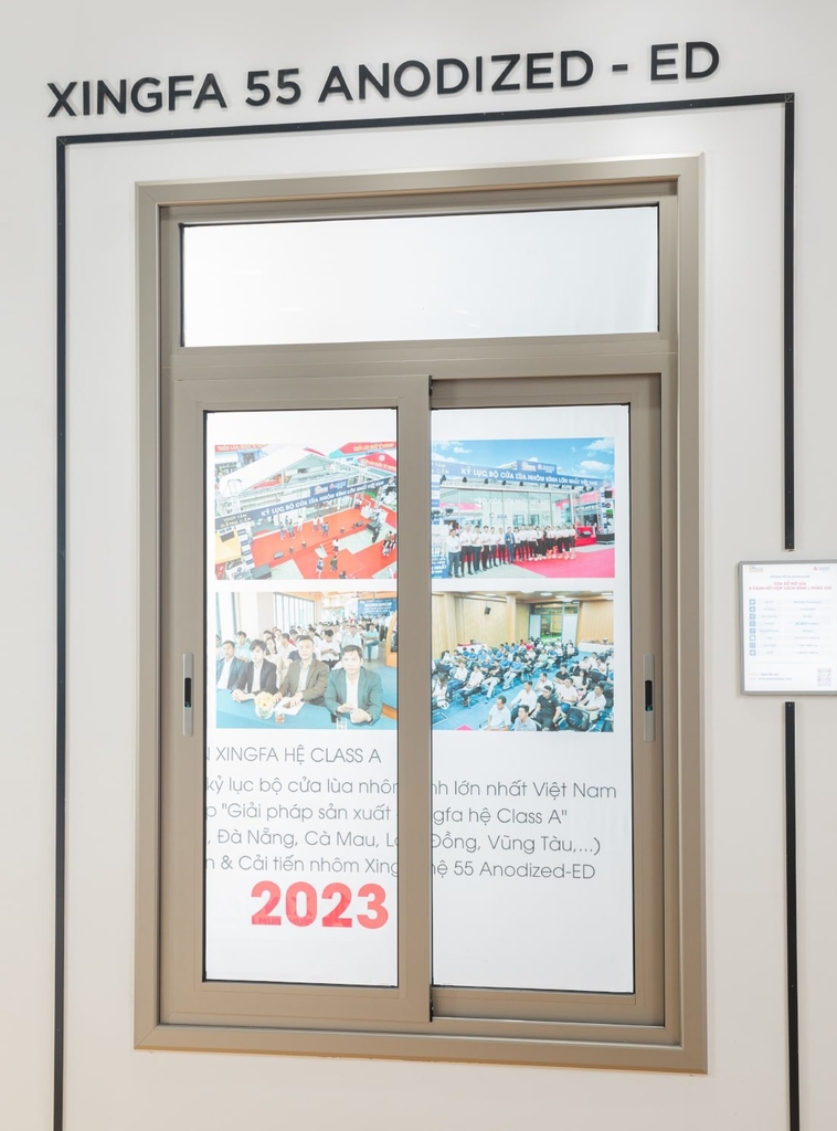 Đây là dòng cửa có khả năng đóng, mở nhờ hệ thống khung trượt. Với hai cánh cửa có thể mở cùng một lúc hoặc mở riêng lẻ, mẫu cửa sổ lùa 2 cánh tạo điều kiện cho luồng không khí thông thoáng và gió tự nhiên đi vào trong nhà. Cửa sổ 2 cánh mở lùa nhôm Xingfa hệ 55 Anodized-ED là dòng sản phẩm sử dụng profile nhôm Xingfa hệ 55 cải tiến về giải pháp xử lý bề mặt từ sơn tĩnh điện sang công nghệ xử lý bề mặt Anodized -ED khác biệt ở lớp điện di ED, được cường hóa 3 lần, giúp bề mặt profile bền, đẹp và chống chịu thời tiết biển theo tiêu chuẩn Nhật Bản JIS H8602 CLASS A1.